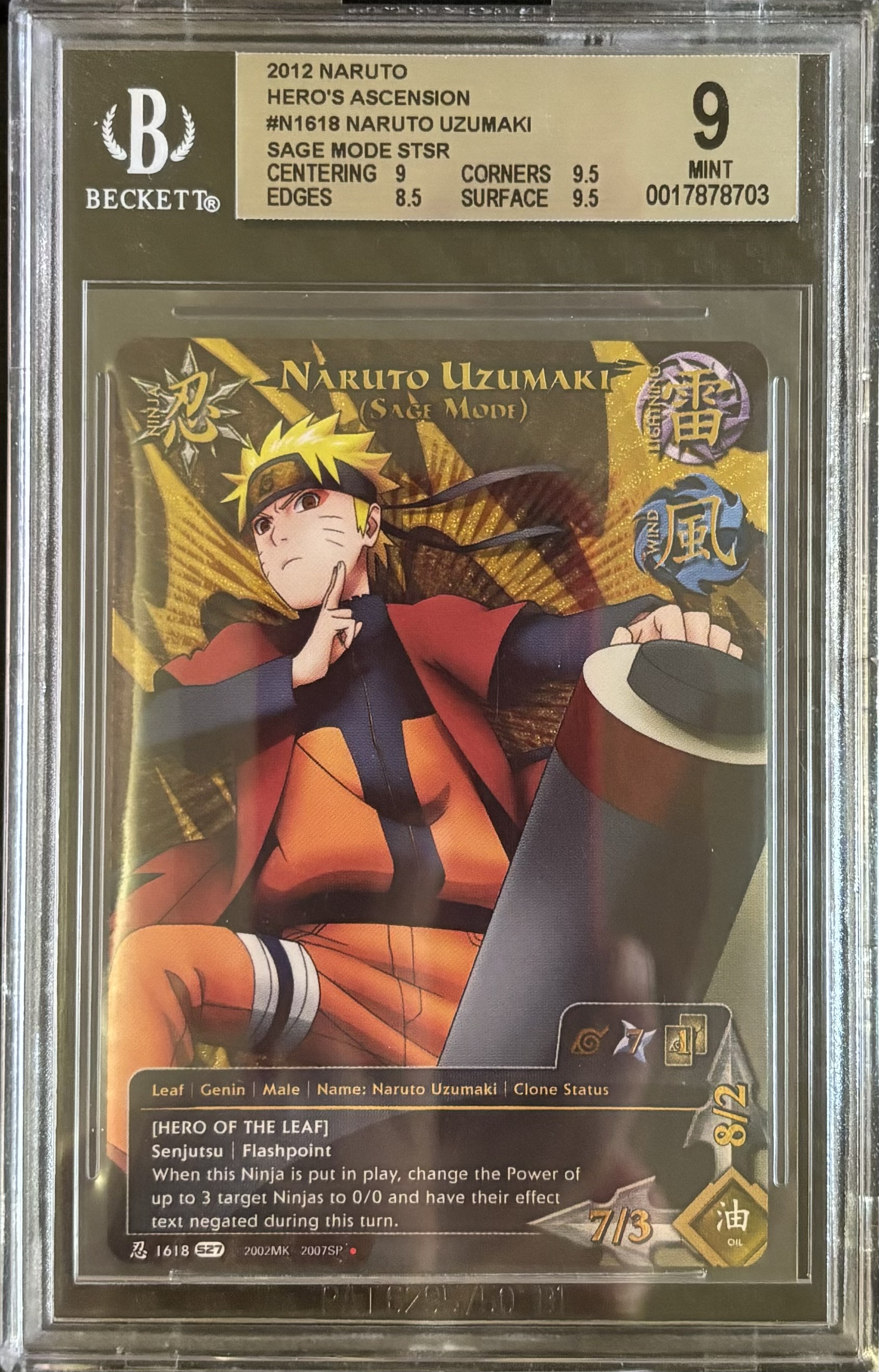 Descubre una joya para verdaderos fanáticos del anime: carta coleccionable de Naruto Uzumaki en Sage Mode de la exclusiva serie Hero’s Ascension 2012. Esta pieza única viene certificada por Beckett con una calificación de 9 (Mint), lo que garantiza su estado impecable y su alto valor para coleccionistas exigentes. La carta presenta colores vibrantes y detalles impresionantes, perfecta para exhibir en tu colección. Tamaño estándar de carta coleccionable, ideal para fundas o exhibidores. No dejes pasar la oportunidad de añadir esta reliquia de Naruto a tu colección.